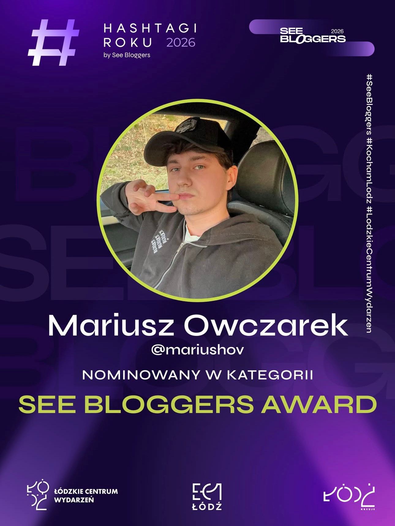Z Bytowa na jedną z najważniejszych scen polskiego internetu. Mariusz Owczarek, 19-letni twórca internetowy, został nominowany do prestiżowej nagrody #Hashtagi Roku w kategorii SEE BLOGGERS AWARD. To wyróżnienie przyznawane podczas festiwalu See Bloggers w Łodzi, jednego z najbardziej rozpoznawalnych wydarzeń branży influencerów i twórców internetowych w Polsce.