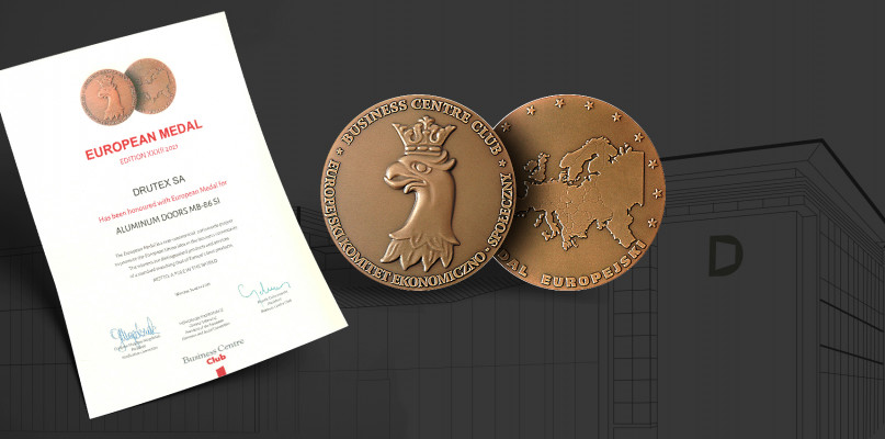 Drutex SA po raz kolejny został uhonorowany Medalem Europejskim w prestiżowym konkursie organizowanym przez Business Centre Club. Tym razem wiodący europejski producent stolarki budowlanej został doceniony za drzwi aluminiowe MB-86 SI.