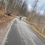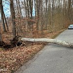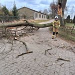 To był bardzo pracowity poniedziałek wielkanocny dla strażaków z powiatu bytowskiego. Silny wiatr od rana do późnego wieczora łamał drzewa, zagradzał drogi, zrywał elementy dachów i stwarzał zagrożenie zarówno dla kierowców, jak i pieszych. Do tego doszły jeszcze interwencje związane z pożarami kominów, czujnikiem czadu i pożarem łąki. W wielu miejscach przejazd był całkowicie niemożliwy.