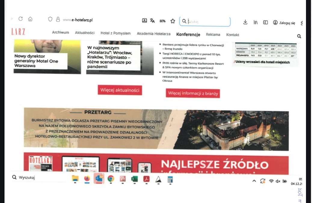 - Analizując podjęte przez miasto działania promocyjne, widać próbę wyjścia poza standardowe, urzędowe ogłoszenia, co jest krokiem w dobrym kierunku. Jednak zastosowane metody miały głównie charakter informacyjny, a nie sprzedażowy. Skupiono się na dotarciu do szerokiego grona odbiorców poprzez prasę regionalną i branżowy portal, co przy tak niszowej ofercie jest mało efektywne. Zabrakło precyzyjnego dotarcia do właściwej grupy docelowej, czyli doświadczonych inwestorów z branży HoReCa - komentuje Krzyżaniak. - Kluczowa byłaby zmiana podejścia z pasywnego 'ogłaszania przetargu' na aktywne 'sprzedawanie okazji inwestycyjnej', w ramach którego zamek jest prezentowany nie jako przedmiot przetargu, ale jako unikalna okazja biznesowa. Podsumowując, mimo dobrych intencji, działania przeprowadzono w sposób tradycyjny. Przy niewielkim i rozproszonym na mało skuteczne kanały budżecie dało to niewielką szansę na dotarcie do właściwej osoby decyzyjnej.