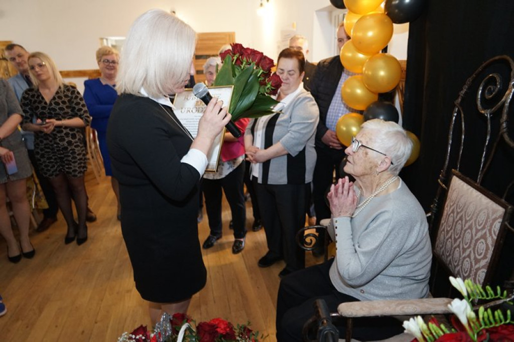 W miniony piątek (21 kwietnia) w Jasieniu odbył jubileusz 100. urodzin pani Heleny Szuty z Jasienia. Uroczystość rozpoczęła się Mszą Świętą w kościele w Jasieniu, w której uczestniczyła rodzina i przyjaciele seniorki oraz przedstawiciele samorządu gminy Czarna Dąbrówka. Następnie goście wyruszyli do sali wiejskiej, gdzie odbyło się niezwykłe przyjęcie.