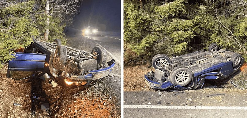 Pechowo zakończyła się próba wyprzedzania na drodze krajowej nr 20 pomiędzy miejscowościami Łąkie a Półczno. Zamiast płynnego wyprzedzania, doszło do groźnego zderzenia z ciężarówką i dramatycznego dachowania. Rozbity pojazd całkowicie zablokował trasę, a dwie poszkodowane osoby wylądowały w szpitalu.